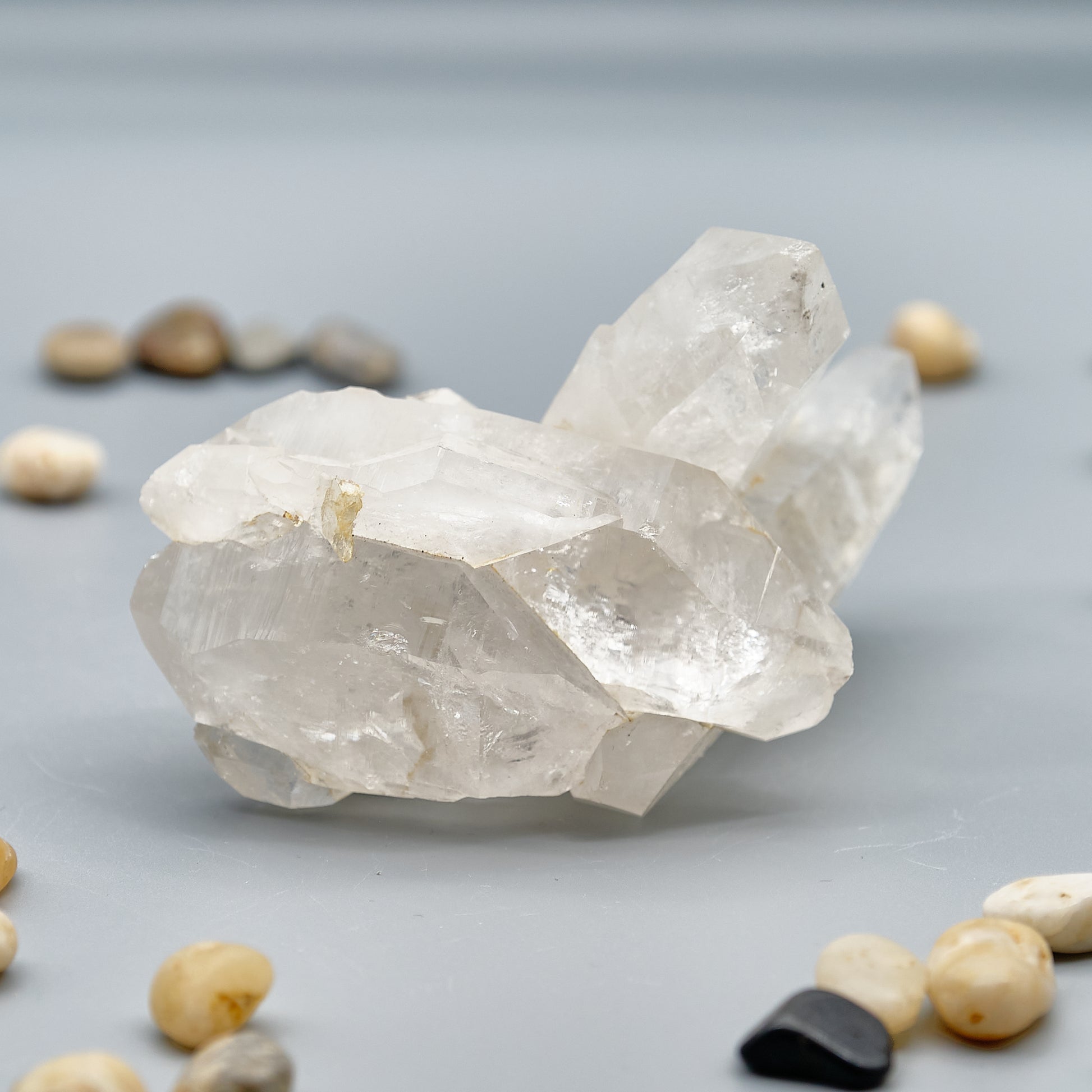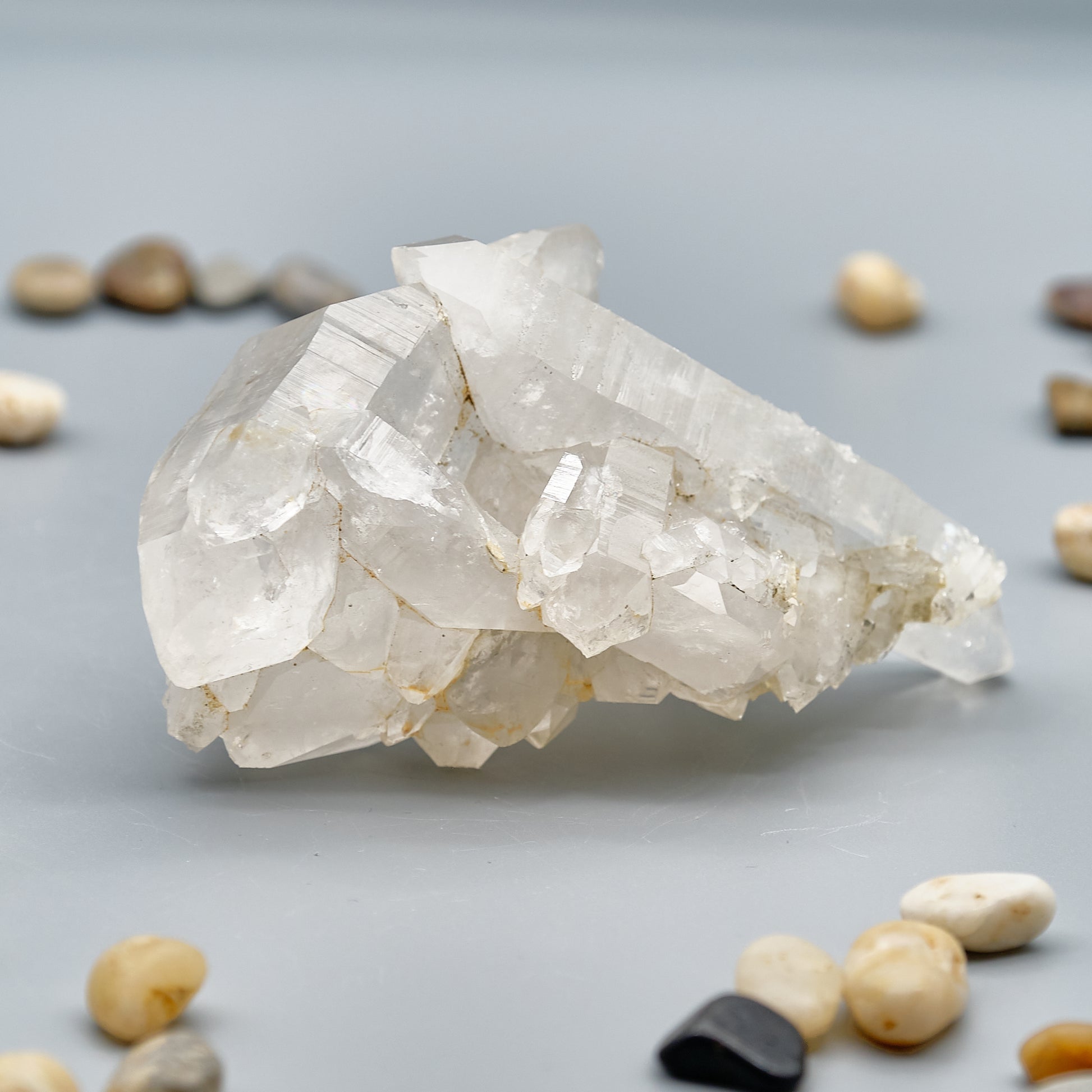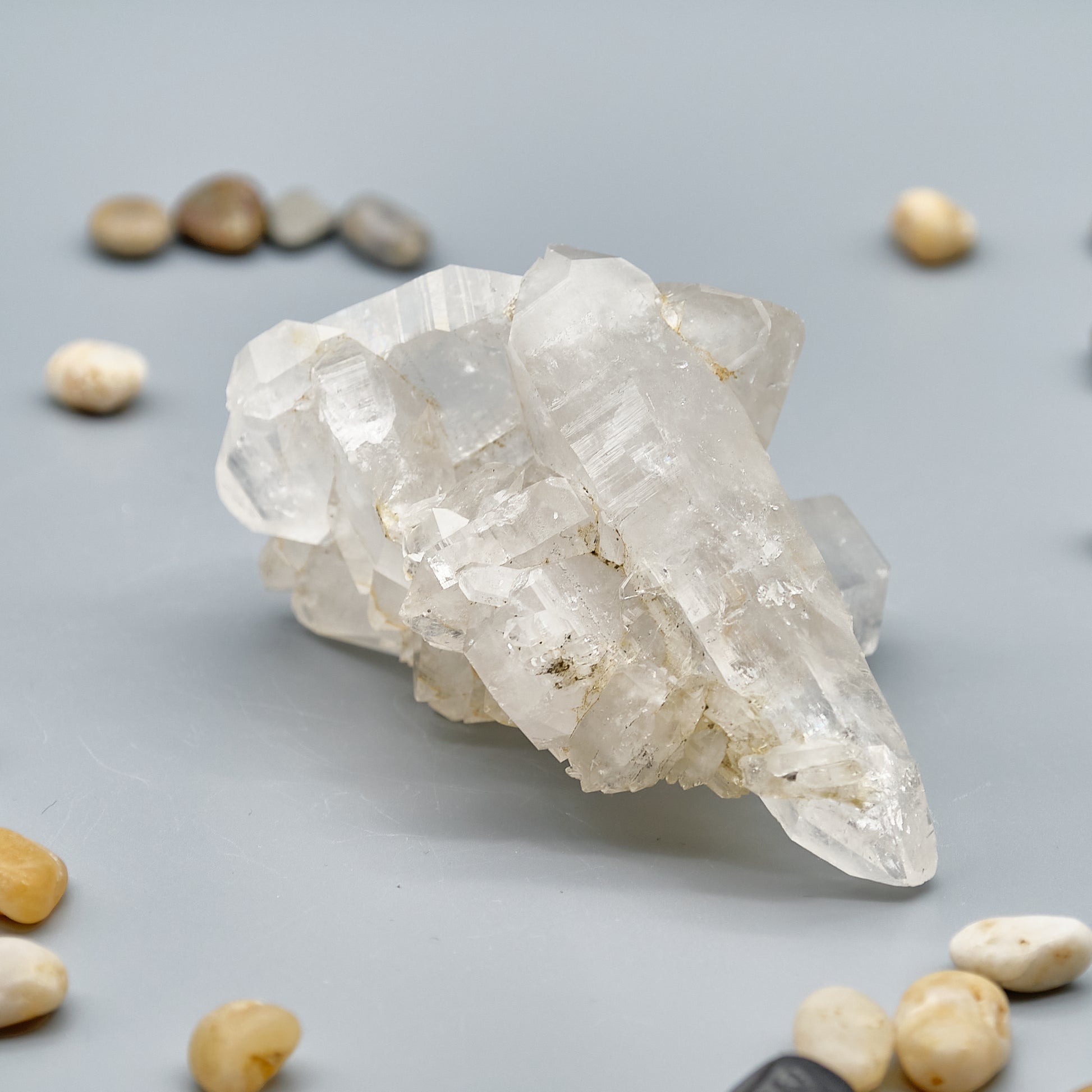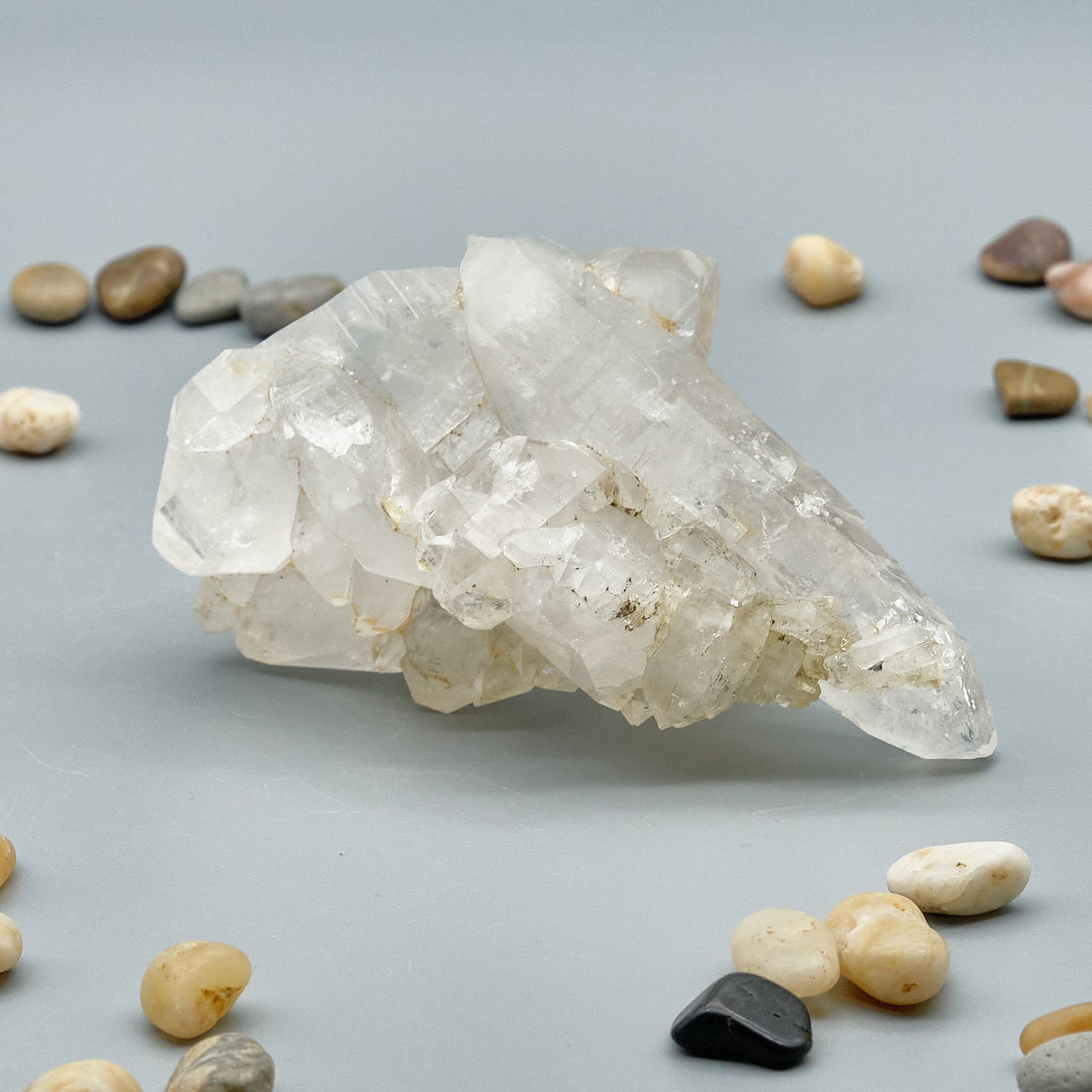 This stunning Clear Quartz Cluster showcases beautifully defined points that catch and reflect light, creating a captivating, shimmering effect. Clear quartz is known as the "Master Healer" and is prized for its high vibrational energy and versatility in healing practices. Perfect for collectors, crystal enthusiasts, and anyone seeking to enhance their space with natural beauty.