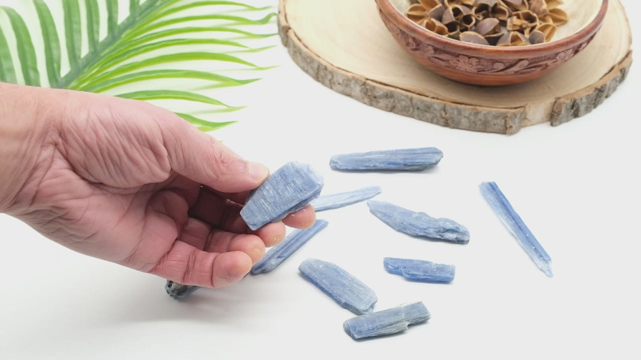 Raw Blue Kyanite Blades available in lengths of 3-8 cm.